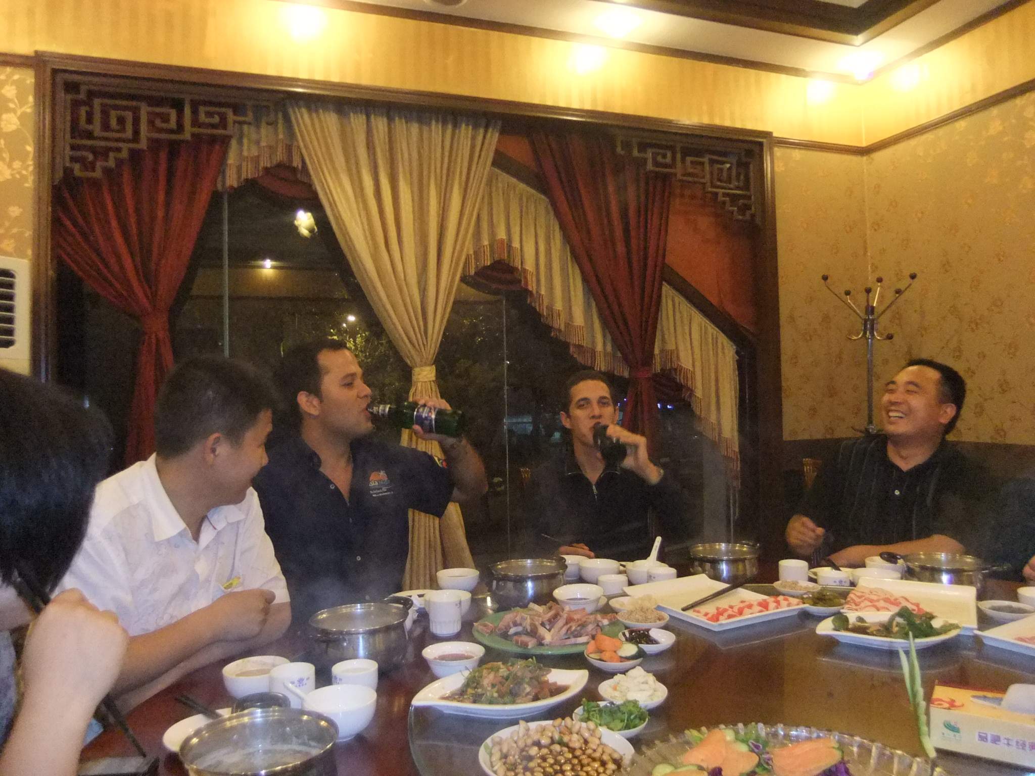 ??? 實(shí)驗(yàn)期間,物料篩分效果良好、篩分質(zhì)量穩(wěn)定,得到了來(lái)自大洋彼岸的朋友的稱贊。晚上我們公司的工作人員和委內(nèi)瑞拉的朋友暢飲狂歡,外國(guó)朋友學(xué)會(huì)了中國(guó)的“干杯”,而我們也知道了“沙路”(下圖,委內(nèi)瑞拉客戶此行我公司很滿意,迫不及待的“沙路”)